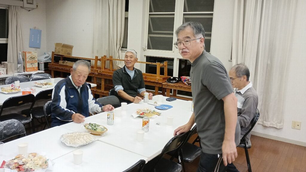 運動会の慰労会 その他 2025.10.122025.10.15 運動会の後五丁目自治会館で慰労会が行われました。佐賀さんのうどんが美味しかったです。他にもいろいろなおつまみが用意されていました。津田尚徳氏が撮影した写真がスライドショーで披露されていました。