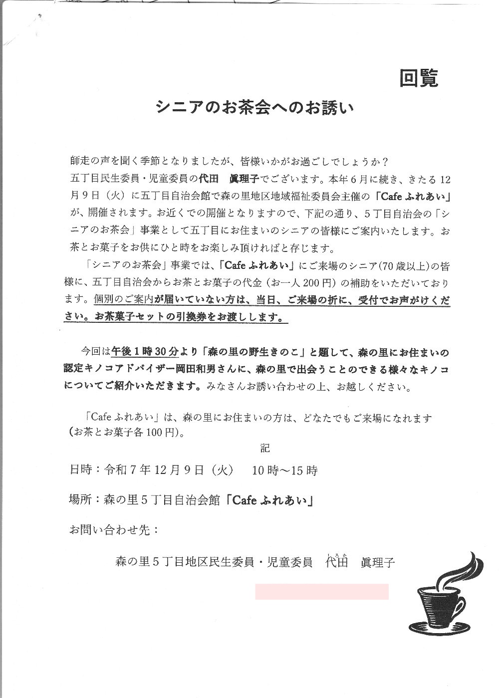 場所:森の里5丁目自治会館「Cafeふれあい」