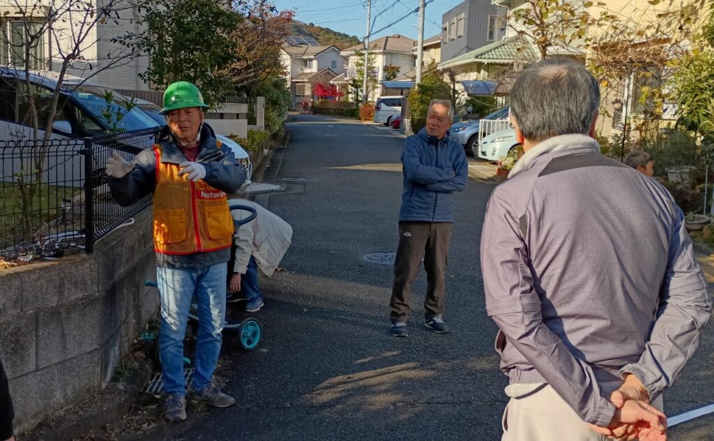 今日はそよかぜ公園の近くの消火栓を使って訓練を行いました。