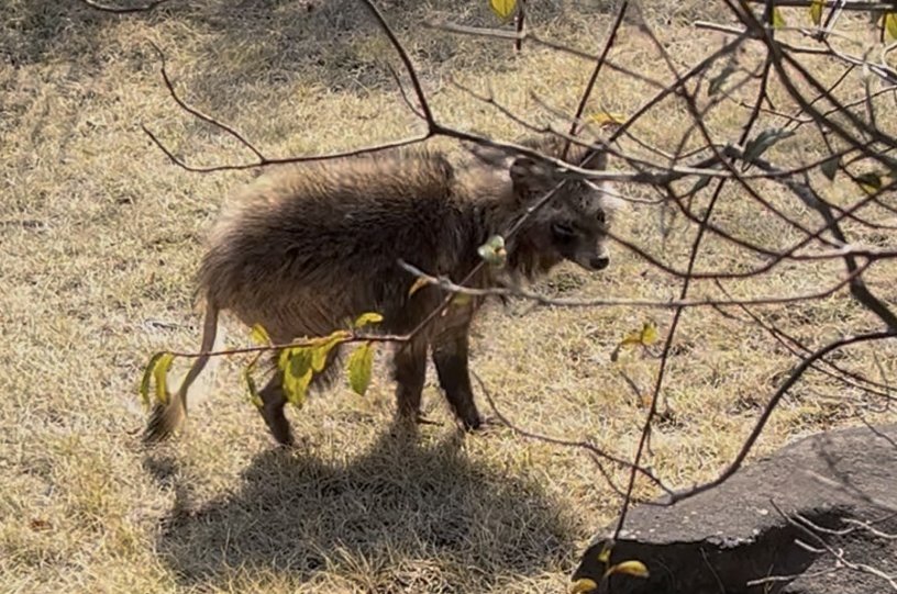 もしかすると、疥癬症(かいせんしょう)にかかっているタヌキのようにも見えます。