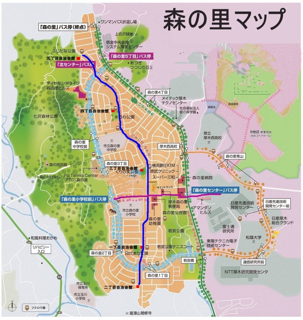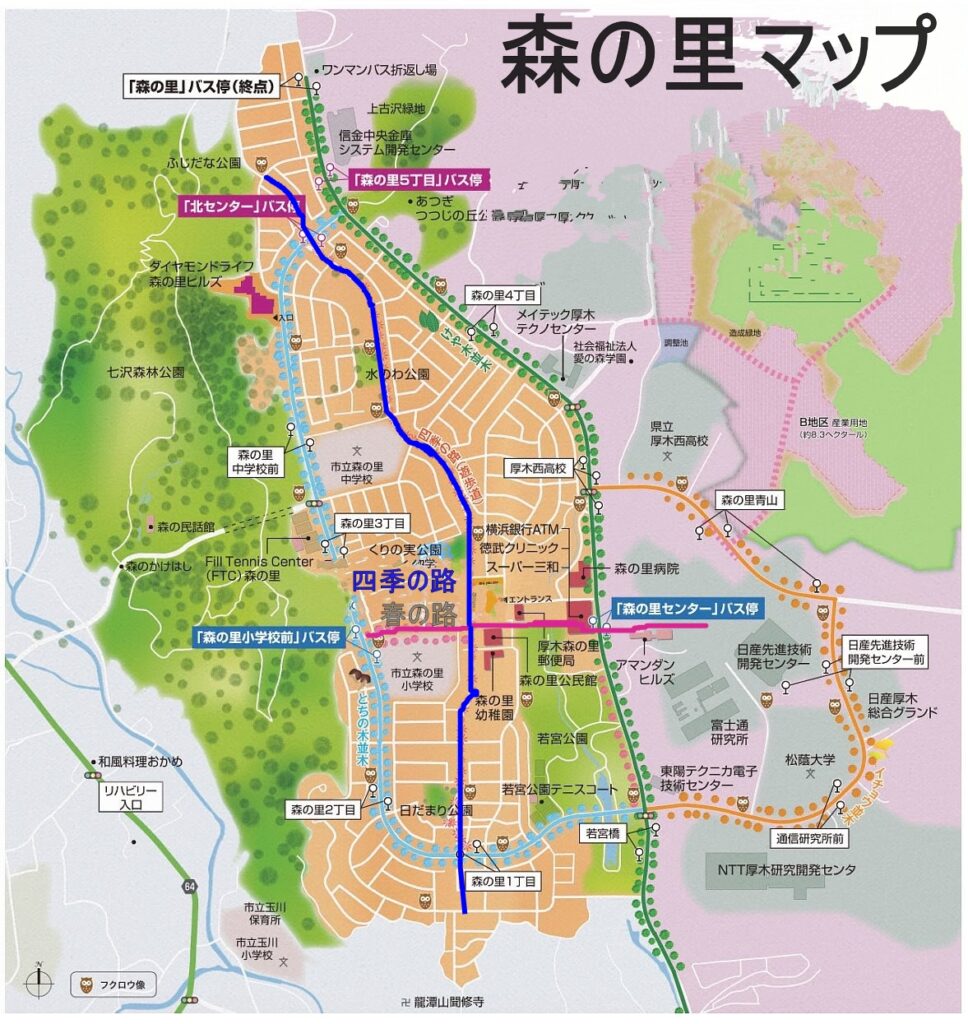 森の里住宅地の中央を、南北に森の里四季の路、東西に森の里春の路というフットパス(歩くことを楽しむための道)が通っています。